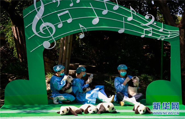 這是9月28日在成都大熊貓繁育研究基地太陽產(chǎn)房拍攝的大熊貓寶寶。 當(dāng)日,成都大熊貓繁育研究基地為2018年出生的12只新生大熊貓寶寶舉行了一場別開生面的亮相活動(dòng)。