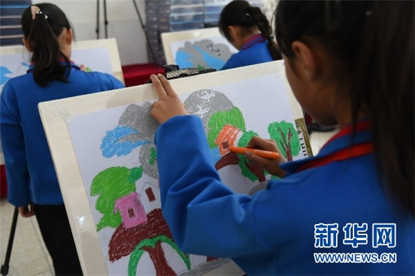 蘭渭希望小學的孩子們正在用海歸捐贈的畫具繪畫。新華社記者王朋 攝
