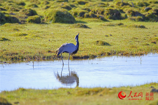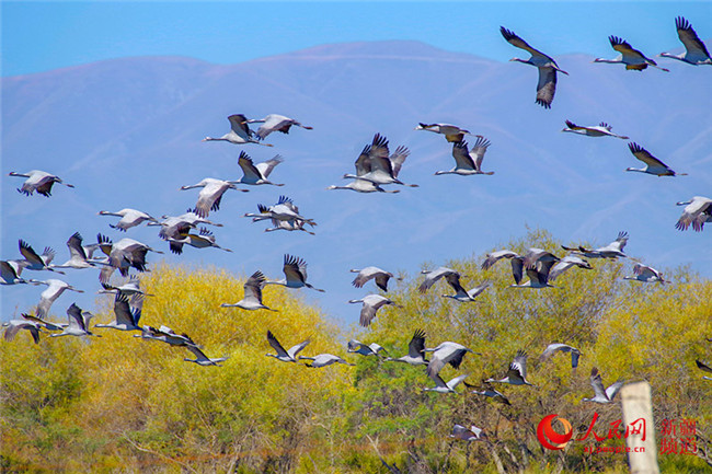 秋日的新疆昭蘇縣是候鳥的天堂。金秋時節(jié),這里天高云淡、馬肥水美,樺樹、紅柳、薔薇、沙棘等次生林呈現(xiàn)一片金黃,良好的自然生態(tài)環(huán)境吸引了大批灰鶴、大雁、野鴨、天鵝、鸛在此棲息,被游客們稱為“鳥類天堂”,吸引大批游人駐足觀看。