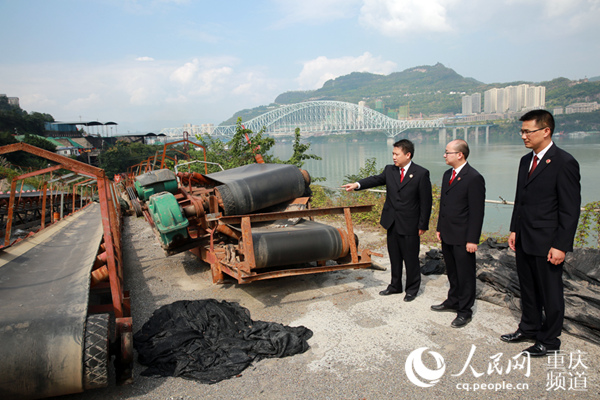 10月17日,重慶市人民檢察院第二分院檢察官?gòu)?fù)勘非法碼頭整治現(xiàn)場(chǎng)。劉政寧 攝