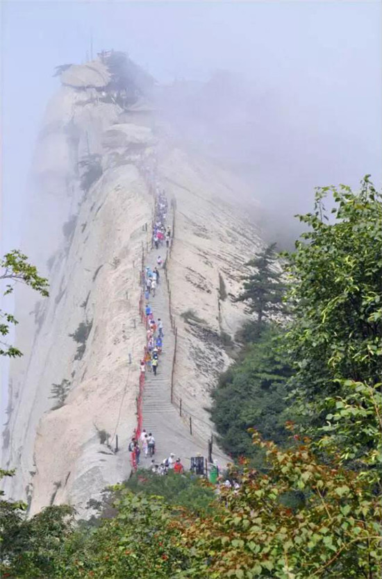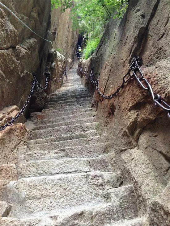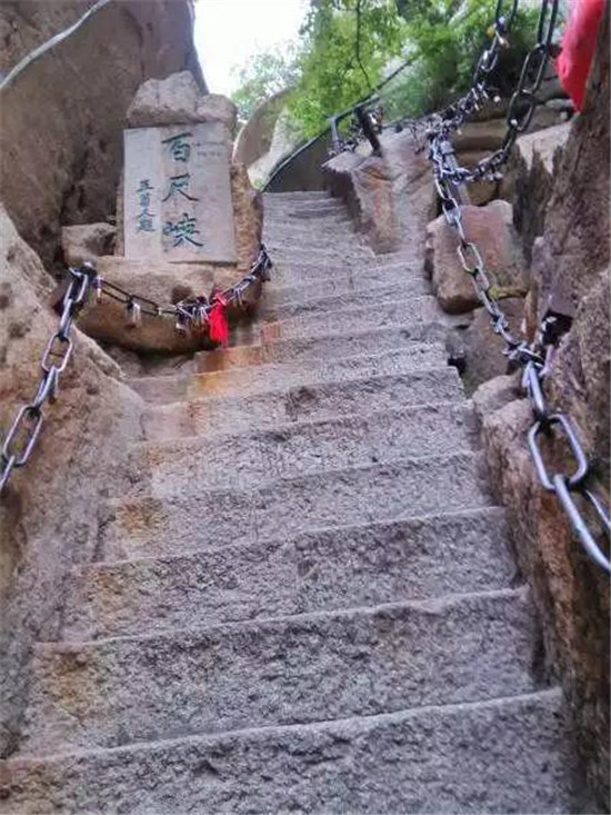 華山的登山道路自古以來以奇險著稱,而且只有一條道路,別處不能通達(dá),可謂天下奇觀。“自古華山一條路”的奇特景觀,造就和形成了華山特出的道路景觀文化。這條道路越石潤、穿石峽臨峭壁、就危崖,奇絕壯美,峻險峭麗,景色各異,各顯其奇,形成了異景紛呈的脊嶺道路、巖隙道路、絕壁道路、凌空棧道等多種道路景觀,加之人們給這些道路上演繹了許多美麗的傳說故事,使華山的道路充滿了濃郁的文化氛圍。