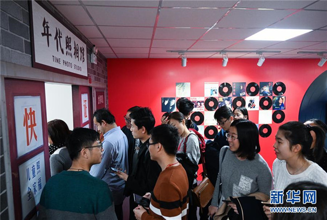 11月17日,觀眾在展覽上的“時光博物館”內(nèi)排隊體驗?zāi)甏障囵^。 新華社記者 陳曄華 攝