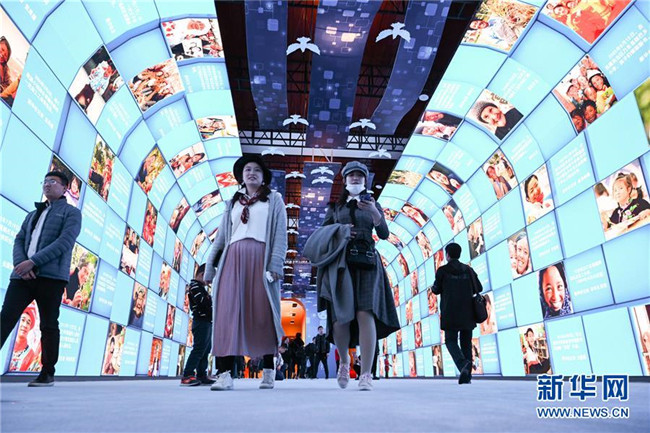 11月17日,觀眾在展覽上參觀“大美中國”影像長廊。新華社記者 陳曄華 攝
