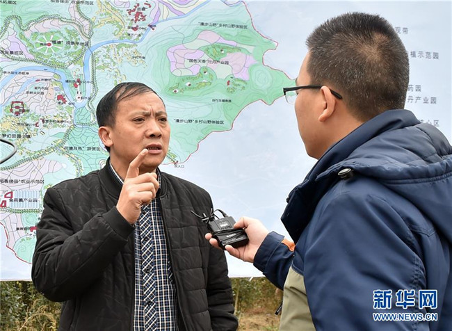 貴州安順平壩區(qū)塘約村村支書(shū)左文學(xué)(左)接受新華社記者采訪(2016年12月14日攝)。新華社記者李賀攝