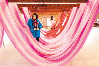 2018年以來,河北省衡水市冀州區(qū)依托當?shù)氐氖〖壏沁z田園棉手織粗布技藝資源,采取“非遺+扶貧”的模式,通過非遺傳承人開展技能培訓、老師傅傳幫帶等,讓村民在傳承非遺文化的同時學習傳統(tǒng)技藝,助力脫貧致富。圖為12月25日,衡水市冀州區(qū)一家老粗布生產(chǎn)企業(yè)的工人在檢測布料干濕度。