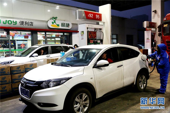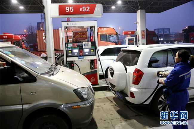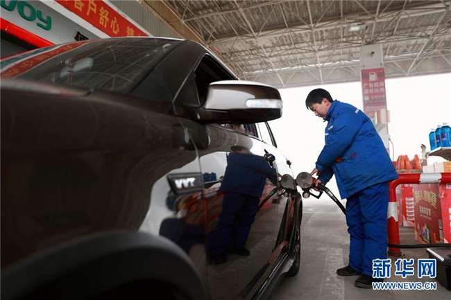 1月14日,河北省邢臺市任縣一加油站的工作人員在給車輛加油。新華社發(fā)(宋杰 攝)