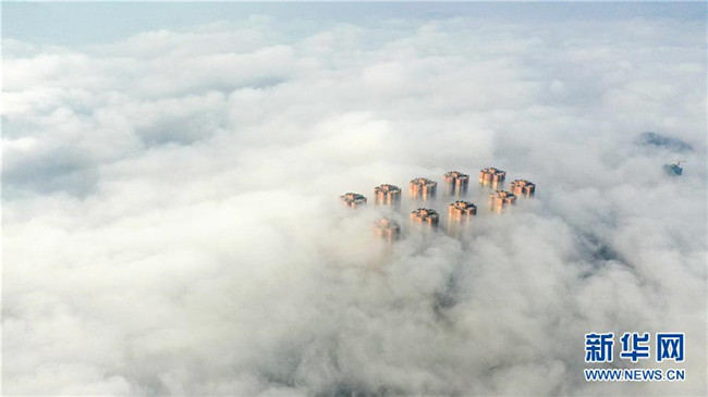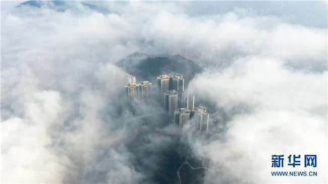 當日,銅仁市萬山區(qū)上空出現(xiàn)平流霧景觀,建筑物、山巒在霧氣中若隱若現(xiàn)。新華社發(fā)(伍衛(wèi)東攝)