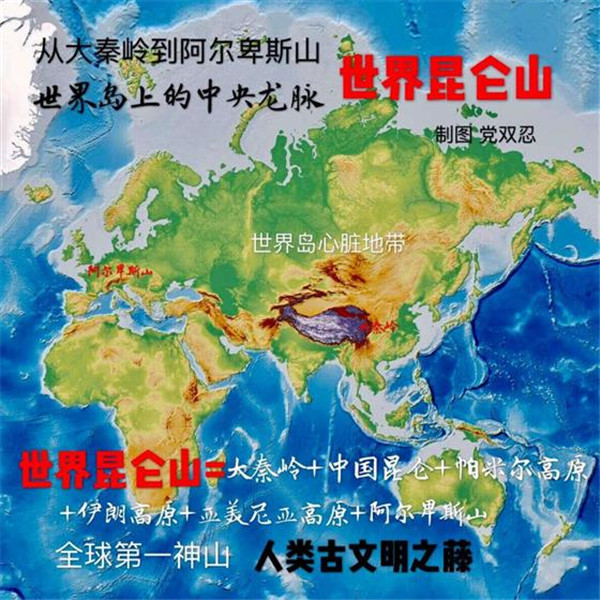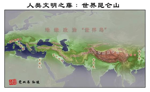按照中國(guó)傳統(tǒng)的龍脈理論,“亞歐大陸的脊梁”也是“世界島”中央龍脈所在。由于人類古文明,包括古華夏、古印度、古波斯、古巴比倫,古希臘,皆源自“亞歐大陸脊梁”,所以也可稱其為“世界昆侖山”。著名的“絲稠之路”,也是從中國(guó)大秦嶺到歐洲阿爾卑斯山之路,也可稱之為“世界昆侖山之路”。過去,德國(guó)人首先“發(fā)現(xiàn)”了古老的“絲綢之路”。進(jìn)入21世紀(jì),英國(guó)人又率先以“絲綢之路”的視角,重新著述了“一部全新的人類史”。今天,中國(guó)人以“亞歐大陸的脊梁”為視野,將“世界島”連為一體,著述“一帶一路”,著述“大秦嶺到阿爾卑斯山之路”,著述“世界昆侖山之路”,也算是一個(gè)世界“地理新發(fā)現(xiàn)”。