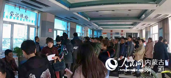 錫林郭勒盟中心血站內(nèi)排滿了前來獻(xiàn)血的市民。