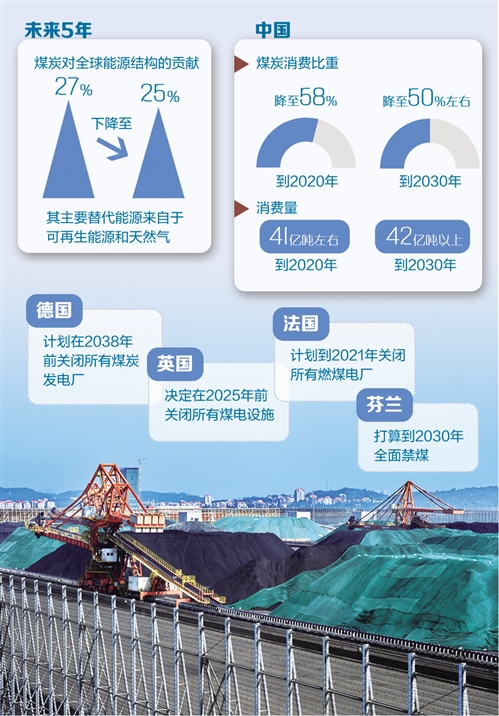 《報告》顯示,未來5年全球煤炭需求將保持穩(wěn)定。歐洲和美國市場煤炭消耗將下降,但其下降的份額將被印度和其他亞洲國家的增長抵消。未來5年,煤炭對全球能源結(jié)構(gòu)的貢獻將從27%下降至25%,其主要替代能源來自于可再生能源和天然氣。
