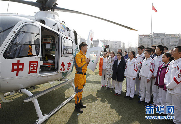 活動現(xiàn)場還設(shè)置了應(yīng)急救援演練,活動安排一架專業(yè)航空醫(yī)療救援直升飛機、兩輛救護車和一輛安全地震模擬車參與。