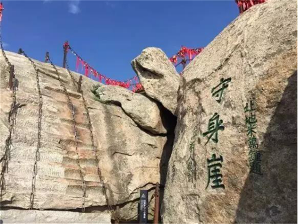 位于華山南天門外南峰腰間,華山奇險(xiǎn)長(zhǎng)空棧道盡頭之處,崖頂面積百余平米。三面懸崖,一面是山壁,山壁上有一洞名曰“賀祖洞”,內(nèi)供華山第一神,乃是元代長(zhǎng)空棧道的開鑿者賀元希。來到思過崖要經(jīng)過華山第一險(xiǎn)長(zhǎng)空棧道,因此此處人跡罕至。來到崖頂,空谷清幽,有絕世獨(dú)立之感,不由得心神入定而有思過之意。還記得我們看過的《笑傲江湖》嗎?令狐沖就是在這里面壁思過的,并無意中發(fā)現(xiàn)了石洞內(nèi)墻壁上的武功秘籍。雖然現(xiàn)實(shí)中沒有什么武功秘籍讓各位發(fā)現(xiàn),但是來華山思過崖還是值得一去的地方。