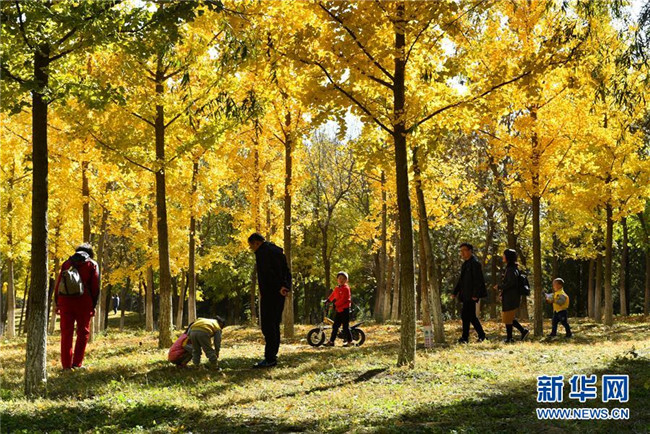 游客在北京通州大運(yùn)河森林公園游玩(2018年10月27日攝)。2016年,通州被賦予新的歷史定位——北京城市副中心,迎來歷史性發(fā)展機(jī)遇。新華社記者 羅曉光 攝