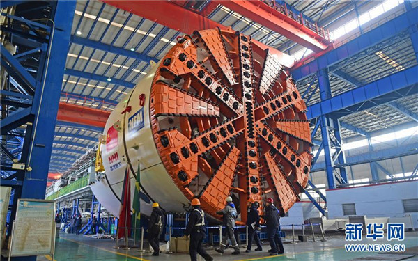 遼寧沈陽(yáng)北方重工集團(tuán)工人在拆解出口到巴西圣保羅的盾構(gòu)機(jī)(2016年1月28日攝)。 新華社記者 楊青 攝