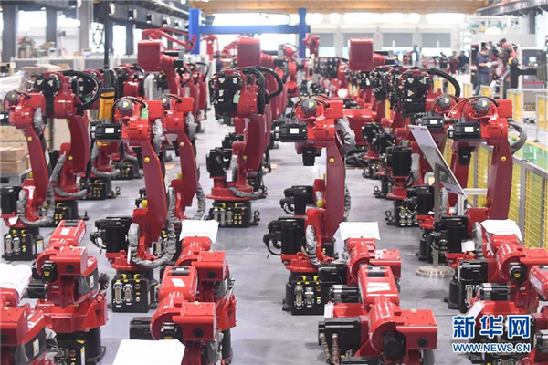 這是沈陽(yáng)新松機(jī)器人公司生產(chǎn)的工業(yè)機(jī)器人(2017年6月6日攝)。 新華社記者 楊青 攝