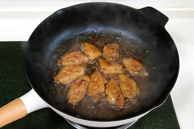 10.燉好后,開大火收汁,完全收干,讓醬汁在雞翅上掛住。