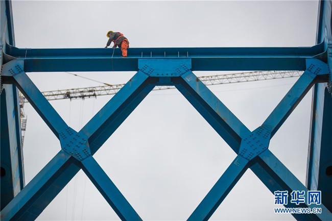 目前,成貴高鐵控制性工程鴨池河特大橋建設(shè)已進(jìn)入最后沖刺階段,大橋主體工程完工,鋼軌鋪設(shè)已經(jīng)完成。預(yù)計(jì)該橋?qū)⒂谀陜?nèi)竣工。 新華社記者 劉續(xù) 攝