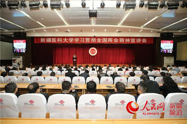 3月17日上午,新疆醫(yī)科大學(xué)會議廳內(nèi)座無虛席,4位出席十三屆全國人大二次會議的新疆全國人大代表返回烏魯木齊后,第一時(shí)間在新疆醫(yī)科大學(xué)開展全國兩會精神宣講。