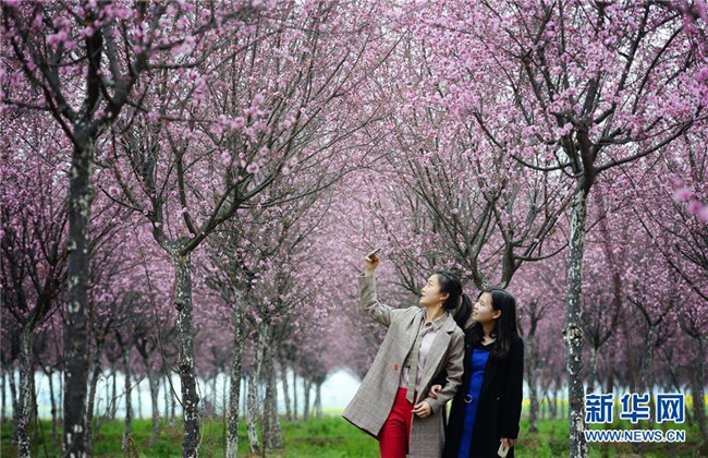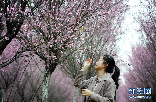 3月19日,游人在陜西勉縣新街子鎮(zhèn)觀賞美人梅。近日,陜西省漢中市勉縣新街子鎮(zhèn)數十畝美人梅開放,吸引游人前來踏春賞花。 新華社記者 劉瀟 攝