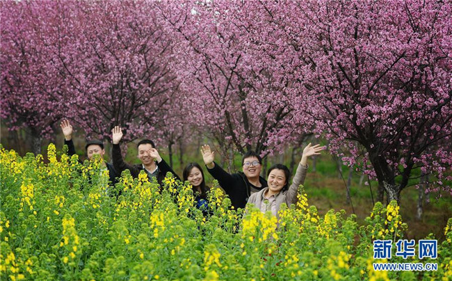 3月19日,游人在陜西勉縣新街子鎮(zhèn)踏春賞花。近日,陜西省漢中市勉縣新街子鎮(zhèn)數十畝美人梅開放,吸引游人前來踏春賞花。 新華社記者 劉瀟 攝