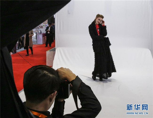 這是2018年11月9日,在中國上海的首屆中國國際進(jìn)口博覽會上,模特展示意大利時裝。 新華社記者 張玉薇 攝