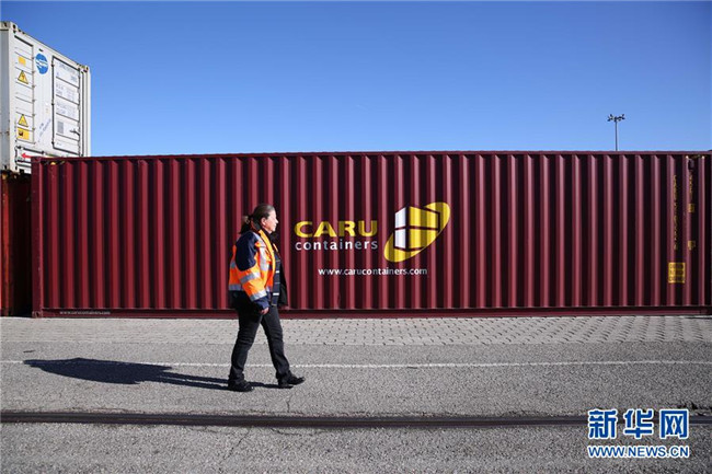 這是2019年3月5日,裝載有中國商品的集裝箱從中國武漢發(fā)出后,經(jīng)由中歐班列運(yùn)輸?shù)诌_(dá)法國里昂。 新華社記者 唐霽 攝