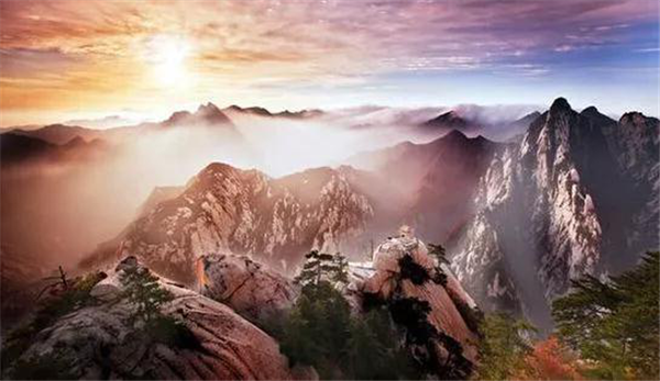 華山可謂渾然一塊的石頭,《水經(jīng)注渭水》中記載“遠而望之,又若華狀”。因為遠處看去像花一樣的山,人們叫它“花山”,“華”與“花”在古代為通用字,所以又稱為“華山”。造化的神功將這壁立千尺的骨骼與華中君子的外形不著痕跡地融為了一體。