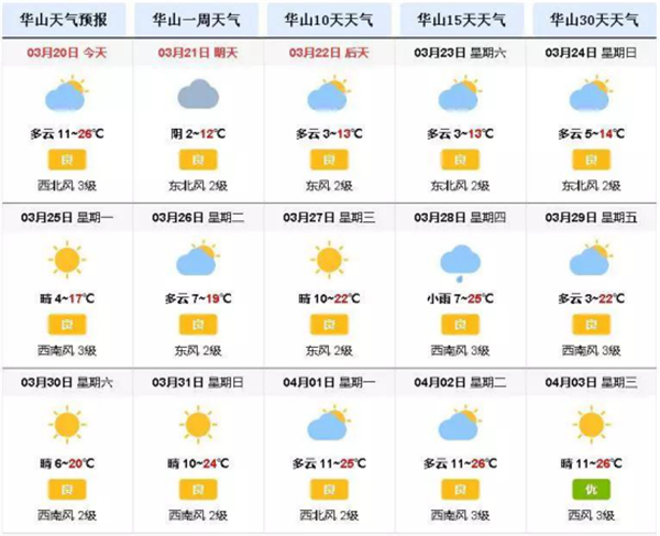三月華山天氣預(yù)報