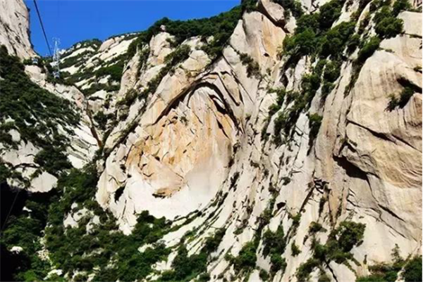 奇特之處:在東峰石樓峰東側的崖壁上,因大自然的風雨侵蝕,形成了一面酷似手掌的石紋。石上五指分明,形象逼真,高有數(shù)十米,奇瑰壯觀,被譽為陜西“關中八景”第一景。