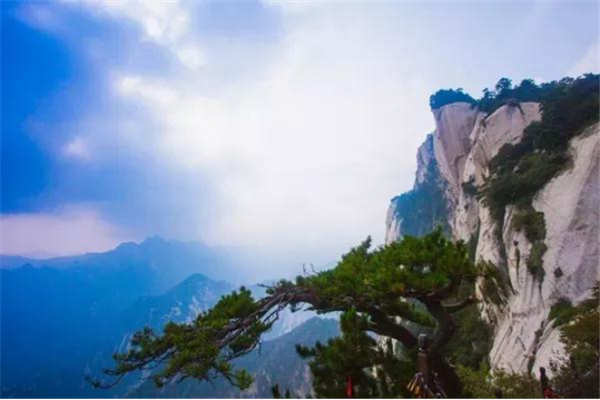 古人云:“山無石不奇,無純石不大奇”。華山奇石當屬“大奇”,雄奇瑰麗,風姿獨具,能令天下人“一見換神骨”。唐詩人孟郊《游華山云臺觀》詩贊華山是“華岳獨靈異,草木恒新鮮。山盡五色石,水無一色泉”。華山的主體是由一塊純粹完整的巨型花崗巖構成,呈柱體狀,巍然屹立,四方如削,峭陡挺拔,高聳云天。正如朱德詩中所說“華山直挺黃河邊,雄視東方函谷關”,大石大奇的壯觀氣勢可謂舉世獨具。其次,它的三座主峰合攏相擁而形成的蓮花狀山勢,也是“石之大奇”的展現(xiàn)。前人說三峰“一石以為莖,二峰以為葉”,形象地狀摹出了華山三峰形似蓮花的狀態(tài)和高表云天,怒放群山的博大與宏偉。另外,由于地殼的裂變斷震,許多似人似物的象形奇石散落于景區(qū)各處,形成了獨具特色,饒有興趣的奇石景觀,而且這些奇石大多都伴隨著一個神奇而美麗的傳說故事,更增添了這類景觀的生動趣味和神秘色彩??梢哉f,華山之石,無石不奇。