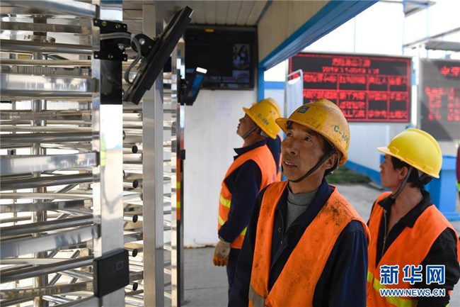 3月26日,工人在實名制通道使用人臉識別技術(shù)進(jìn)入“浙江智慧之門”項目工地。新華社記者黃宗治攝