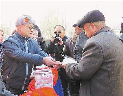 今年1月30日,李園村開啟歷史上首次村集體股份經(jīng)濟(jì)合作社頒證收益分紅,每位村民都享受到紅利。與之配套的,還有50歲以上村民享受100元春節(jié)慰問的二次分紅。李園村黨支部書記馬玉林介紹,隨著村集體經(jīng)濟(jì)改革收益不斷壯大,村里在2017年為70歲以上老人發(fā)放春節(jié)慰問品的基礎(chǔ)上,今年將慰問對象延伸到了50歲以上老人。