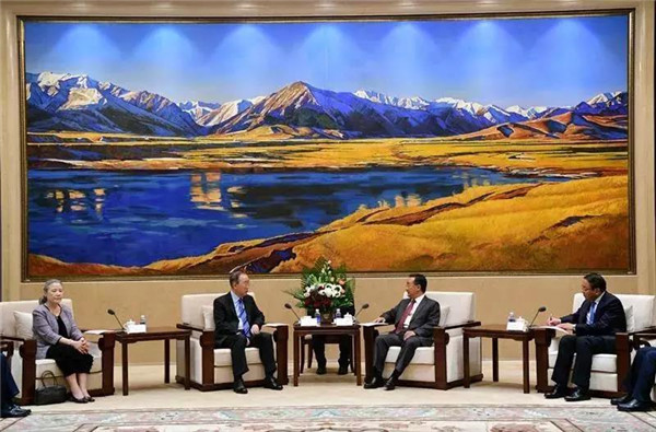 3月29日—3月30日,2019潘基文可持續(xù)發(fā)展大講壇走進(jìn)敦煌系列活動(dòng)成功舉辦。甘肅省委副書記、省長(zhǎng)唐仁健,3月29日在敦煌國(guó)際酒店會(huì)見了博鰲亞洲論壇理事長(zhǎng)、聯(lián)合國(guó)第八任秘書長(zhǎng)潘基文攜夫人柳淳澤一行。