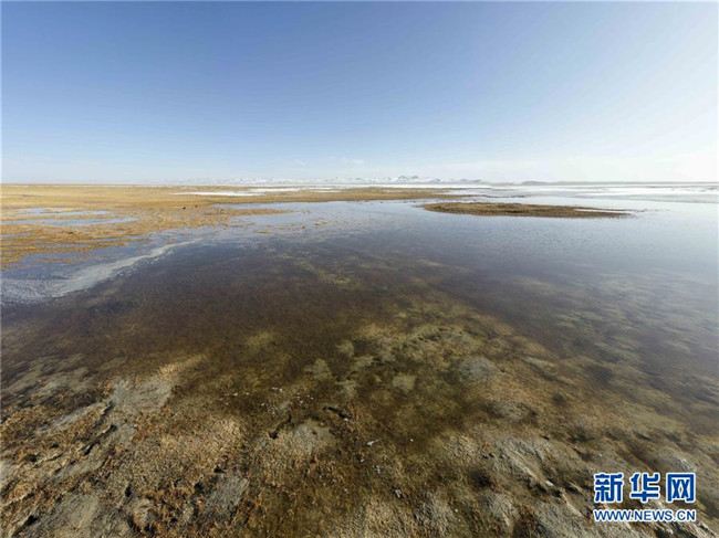 這是阿爾金山國家級自然保護區(qū)內(nèi)的依協(xié)克帕提湖一角(拼接照片,4月2日無人機拍攝)。 新華社記者 胡虎虎 攝
