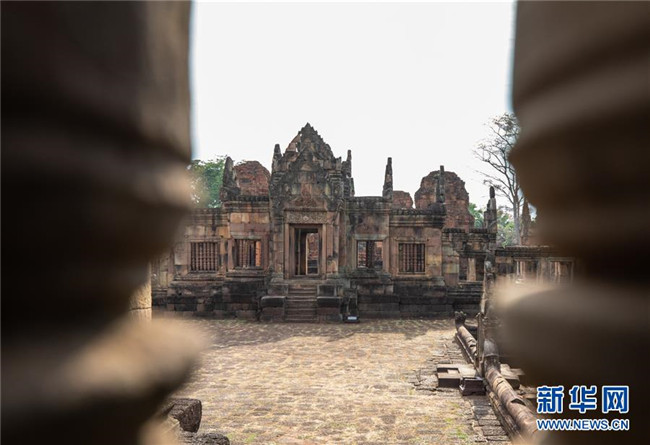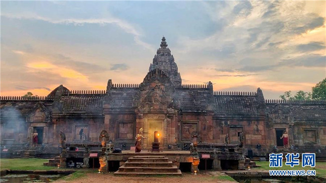 這是4月5日拍攝的泰國武里南府低城寺。 一年一度的“登帕儂隆山節(jié)”在泰國東北部毗鄰柬埔寨的武里南府帕儂隆山舉辦。當(dāng)?shù)厝艘怨叛b巡游展示獨特的傳統(tǒng)文化,希望能吸引更多外國游客、促進當(dāng)?shù)芈糜螛I(yè)發(fā)展。 新華社記者 張可任 攝