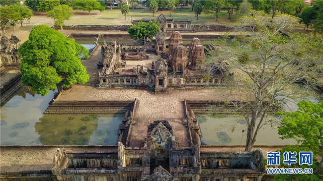 這是4月5日航拍的泰國武里南府低城寺。 一年一度的“登帕儂隆山節(jié)”在泰國東北部毗鄰柬埔寨的武里南府帕儂隆山舉辦。當(dāng)?shù)厝艘怨叛b巡游展示獨特的傳統(tǒng)文化,希望能吸引更多外國游客、促進當(dāng)?shù)芈糜螛I(yè)發(fā)展。 新華社記者 張可任 攝