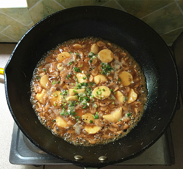 10.大火燒開后轉(zhuǎn)中小火,燴燒約5分鐘。