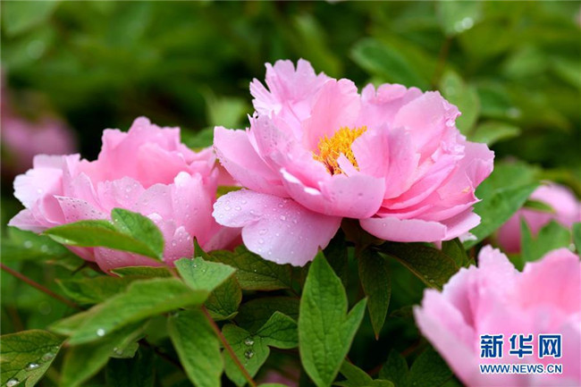 這是石家莊市正定榮國府影視基地盛開的牡丹花(4月13日攝)。時下,河北石家莊正定榮國府影視基地內(nèi)的牡丹花次第開放,在春雨的滋潤下顯得格外晶瑩剔透、美麗嬌艷。 新華社發(fā)(陳其保 攝)