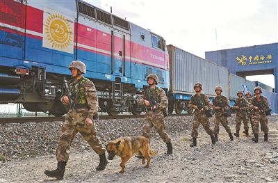 2011年12月,中哈國際鐵路開通后,在中哈邊境駐守的英塔爾邊防連官兵,便承擔起守護這條鐵路“大動脈”的光榮使命。隨著“一帶一路”建設的深入推進,途經(jīng)這里的中歐貨運班列不斷增加,2017年6月又開通了客運列車。為確保邊境穩(wěn)定和出入境列車安全,連隊堅持從嚴施訓,高標準開展管邊守邊工作。