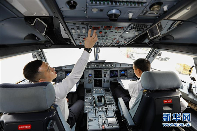4月18日,試飛開始前,重慶航空公司的機(jī)長在進(jìn)行航前檢查。當(dāng)日,隨著重慶航空一架客機(jī)安全平穩(wěn)降落在巫山機(jī)場,標(biāo)志著地處長江三峽核心區(qū)的巫山機(jī)場試飛工作圓滿成功。本次試飛對巫山機(jī)場陸空通信、導(dǎo)航設(shè)施、跑道道面、滑行路線、飛行區(qū)標(biāo)志標(biāo)識、機(jī)場凈空、飛行程序、機(jī)場運(yùn)行標(biāo)準(zhǔn)等進(jìn)行全面檢驗(yàn),各項(xiàng)參數(shù)和指標(biāo)正常,機(jī)場相關(guān)設(shè)施、設(shè)備均符合行業(yè)規(guī)范要求,飛行區(qū)已基本具備民航飛機(jī)通航條件,有望在今年6月正式通航。新華社記者 劉潺 攝