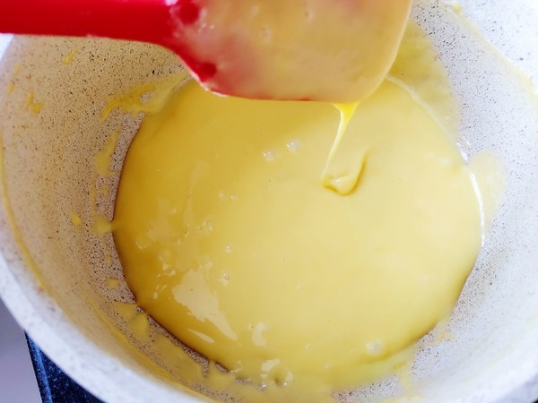 2.今天用燙面后蛋法:把牛奶,玉米油和10克細砂糖入鍋加熱至糖融化。