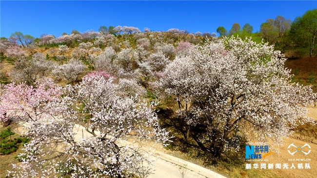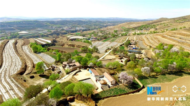原標(biāo)題:【飛“閱”中國】甘肅定西:黃土塬上別樣景 千樹杏花笑春風(fēng)