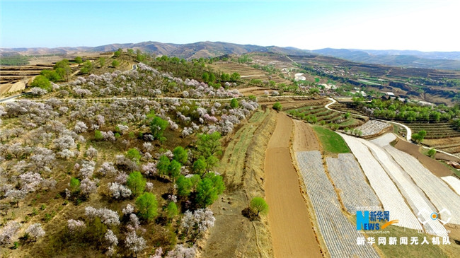 甘肅定西:黃土塬上別樣景 千樹杏花笑春風(fēng)