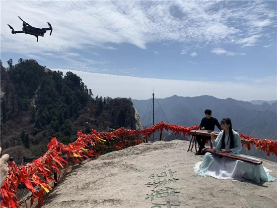 中央音樂(lè)學(xué)院青年古箏演奏家黃偉杰、古琴演奏家張晨曦《墨舞》紀(jì)錄片在西峰頂拍攝