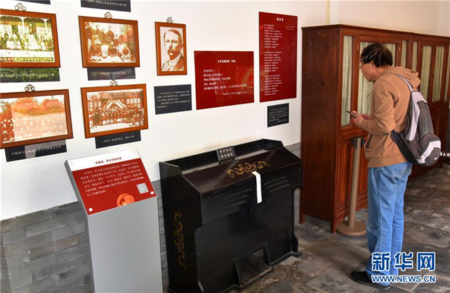 參觀者在位于北京市西城區(qū)文華胡同的李大釗故居內(nèi)參觀(4月19日攝)。新華社發(fā)(任超 攝)