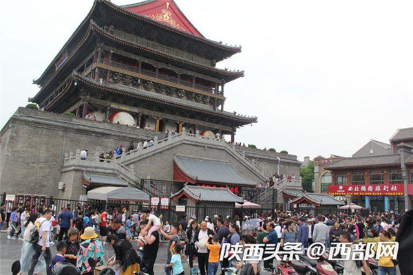 排隊(duì)游覽鼓樓的游客絡(luò)繹不絕。