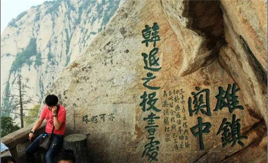 一座山就是一塊花崗巖巨石,自古華山一條道,唐時(shí)韓愈游華山,雄心勃勃,攀至蒼龍嶺時(shí),向下望了一眼,頓時(shí)覺(jué)得頭暈?zāi)垦#瑑赏却驊?zhàn),兩腋生風(fēng),再也不敢挪動(dòng)一步,趺坐于山脊一凹處,上不去,下不來(lái),走投無(wú)路。絕望之下,將衣衫撕成片,寫(xiě)下求救信,扔下山崖,終有一條被人揀到,報(bào)與官府,這才得救。現(xiàn)有蒼龍嶺“韓愈投書(shū)處”為證。