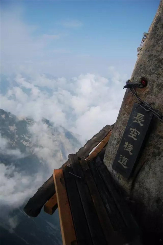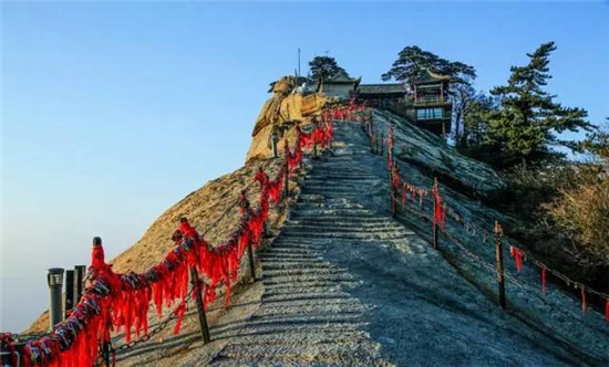 華山山體倚天拔地,四面如削,更有千尺幢、百尺峽、蒼龍嶺、鷂子翻身、長(zhǎng)空棧道等十分險(xiǎn)峻之地,被譽(yù)為“奇險(xiǎn)天下第一山”。