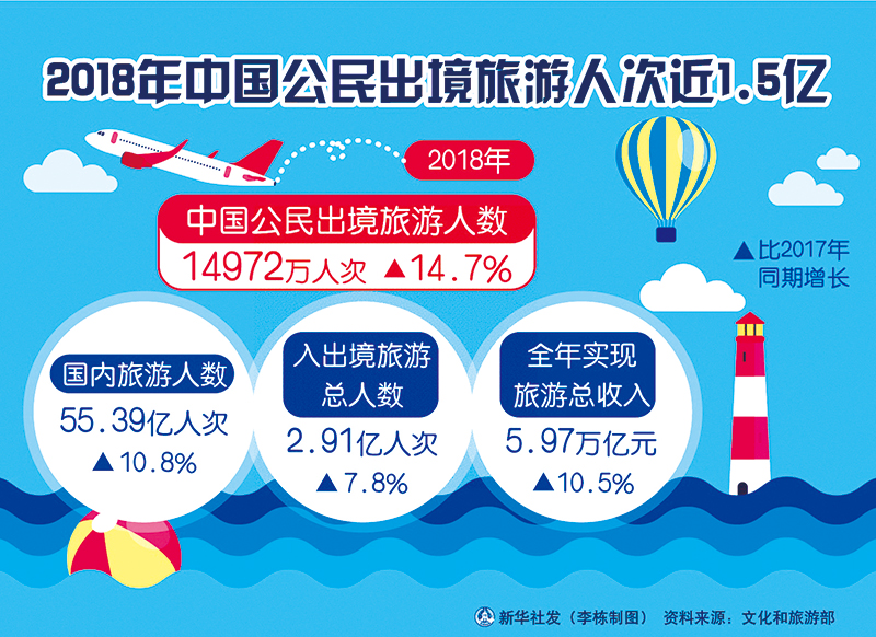 近年來,隨著我國經(jīng)濟社會發(fā)展,人民生活水平得到顯著提高,國民旅游休閑生活更加精彩,出境旅游成為新的時尚。圖為2018年中國公民出境旅游相關(guān)數(shù)據(jù)。 新華社發(fā) 李棟/制圖