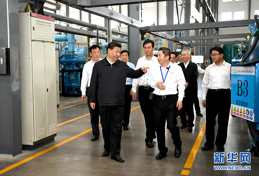 在企業(yè)展廳、生產(chǎn)車間,習近平詳細了解企業(yè)加大科研投入、致力科技創(chuàng)新、注重生態(tài)修復的情況。